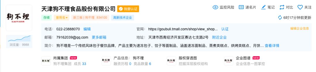 企查查信息显示,狗不理已经把“速冻包子、饺子”列为了主要产品。