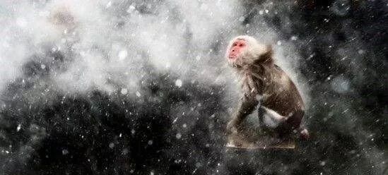 一只猴子在深夜仰望星空。