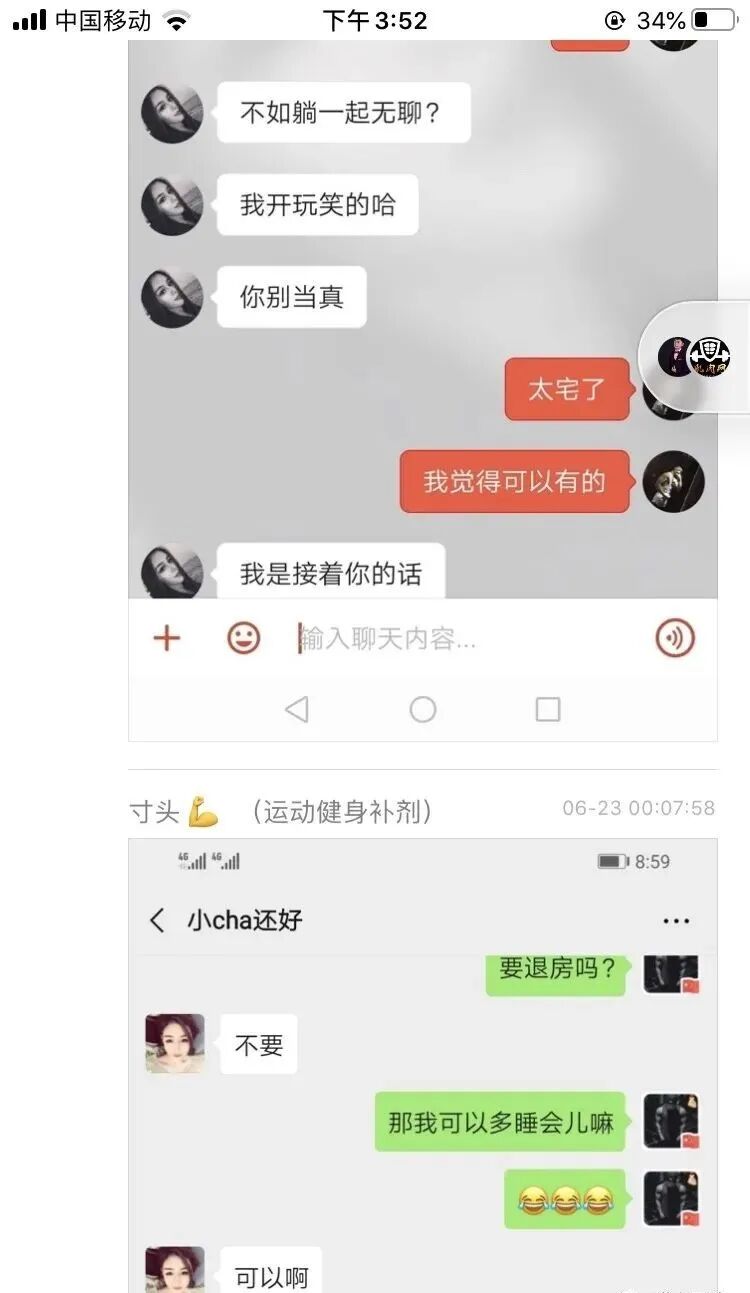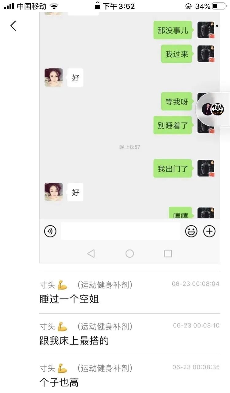以下为这个健身教练保存的照片及聊天记录: