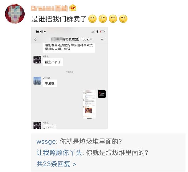 而在曝光博主底下的评论里,有人还在说是谁把群出卖了...▼