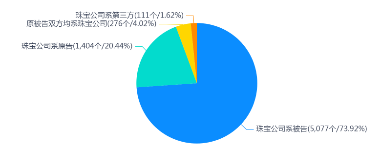 (1)珠宝行商被起诉的案件(作为被告被动参诉,另一方系其他公司、厂商或自然人)共计5077件,占比为73.92%;