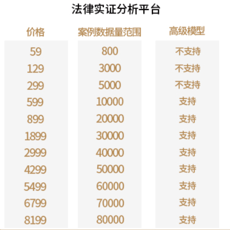 (1)小包公法律实证平台分为免费版、专业版;免费版可创建2个课题,专业版收费标准如下: