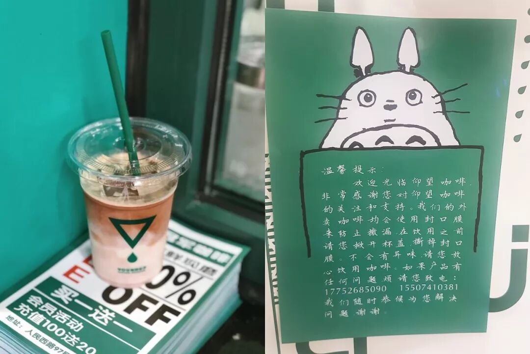 仰望咖啡这个资本实力不雄厚的小店,却找到了一个完美的解决方案:像奶茶一样给杯子用封口机封口,再盖上杯盖。