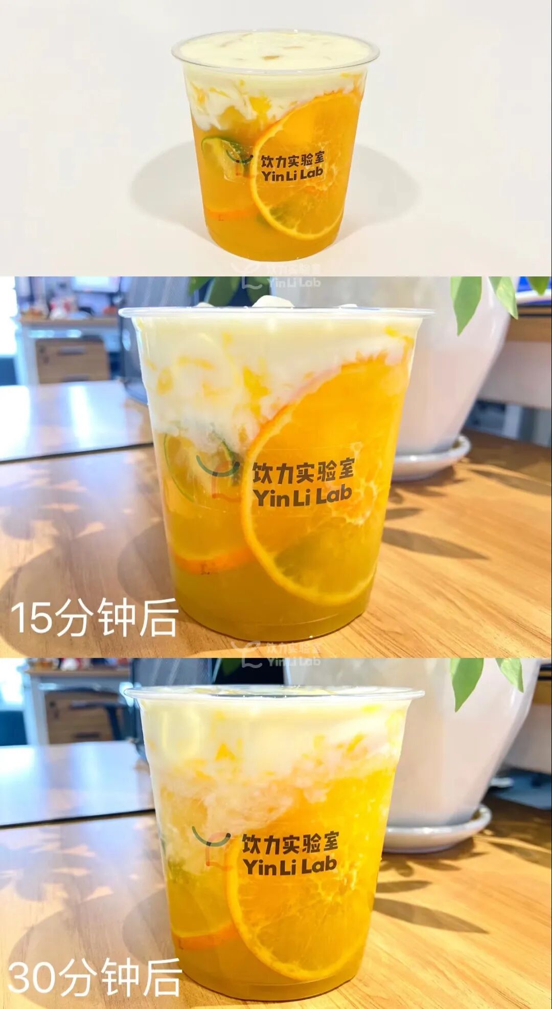 将塞尚2款酸奶分别搭配水果做酸奶捞、水果茶产品,放置一段时间后发现,均没有起絮的情况产生,也体现了在应用上的功能优势。