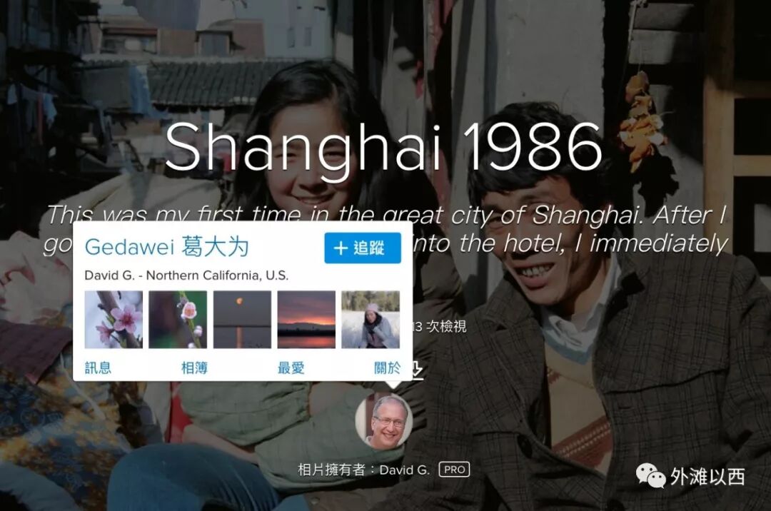 1986年上海相册有一个是美籍犹太人David G建立的,他会读写中文,也给自己起了一个中国名字叫葛大为。他贡献的最有名的上海照片是老西门那里的一家饮食店,店员们正在制作生煎包。