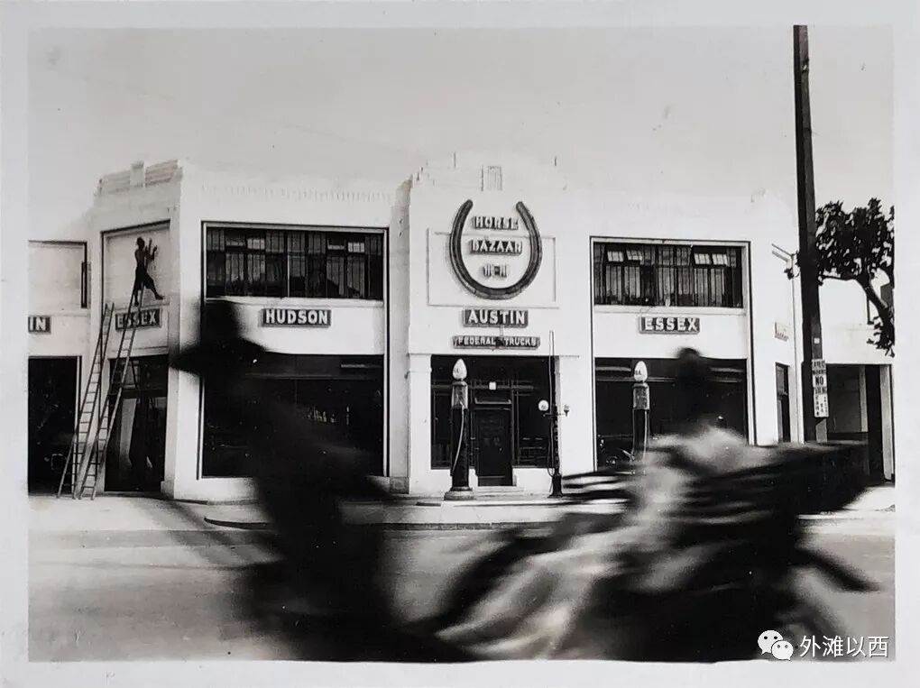 (1)Honigsberg’s Garage,Bubbling Well Road ,有做中外建筑师上海建筑作品鉴定的专家确定这个车行是1927年邬达克设计的,这个车行有翻译成哈茂洋行的。看张霞考证出此车行应该在今天国际饭店附近,那里也是一个车行集聚地,因为有跑马场,可能有些快速中彩的人会到车行转一圈的,现在那里有三家大人家的SHOWROOM。