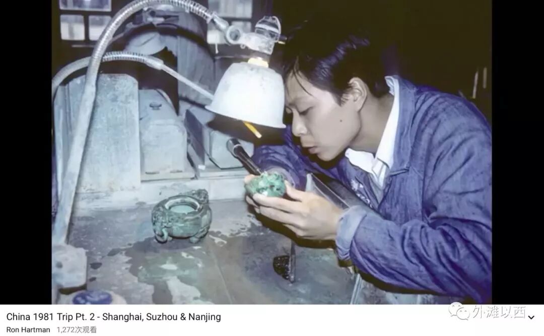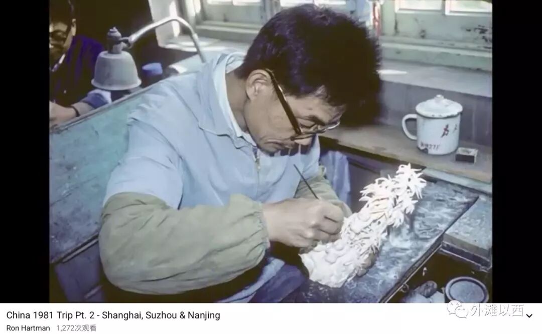 不知道果盆买了没买?接下来的规定项目,套餐之重头,参观上海手工艺制品车间(或者上海地毯厂),如下Ron Hartman 拍摄到了上海工艺美术师们雕刻象牙制品。