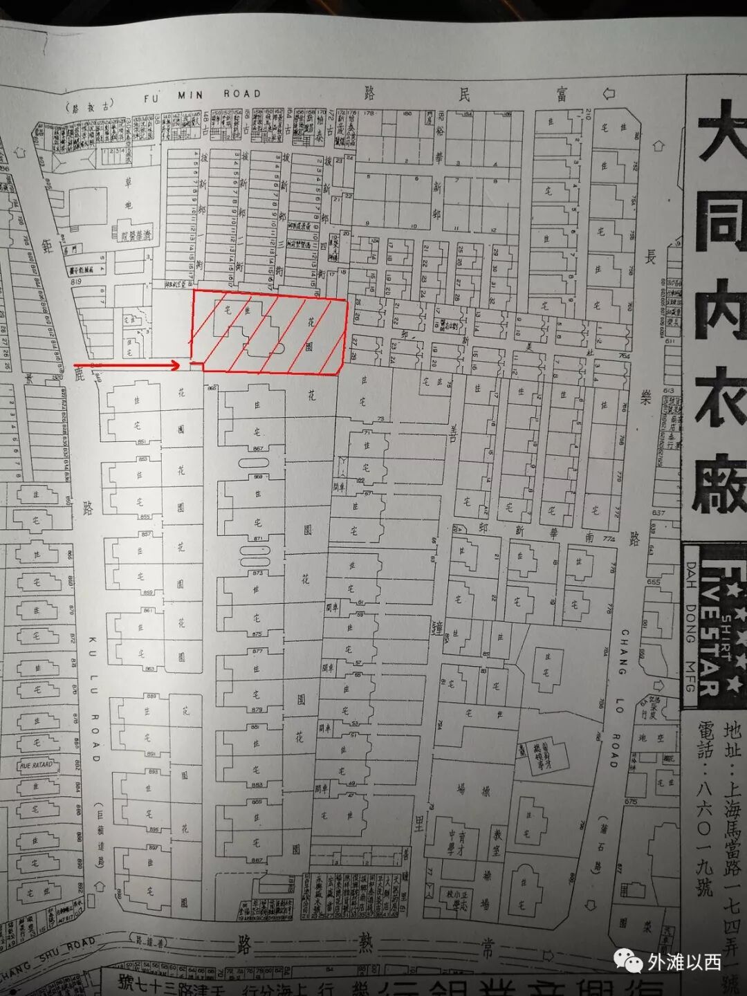 老地图先上,曾经在地块里找啊找的,不去实地真不好乱圈一气,还发现隔壁大宅,待会儿说。下图的红色就是长乐路637弄24号,一位喜欢中国蓝印花布的日本老太太使用(记得很早做老房子笔记的时候还看到有记者采访说是1995年买下的)的大洋房,老太太名叫久保麻纱已于2011年去世,她创立的蓝印花布馆目前归属于东方国际集团,1990年代她在当时上海外贸公司纺织品进出口公司帮助下找到这个深巷大院。