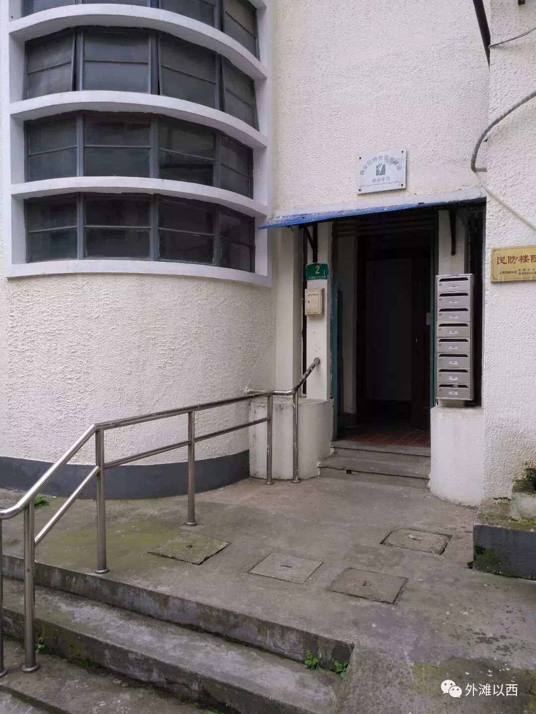 第一看造型,这个现代大宅和长乐新邨的双开新里的造型都属于一路的,只是尺寸大小有区别的。大宅门多运用了几何体,半圆柱体结构,光线这里独好。第二看现代建筑进入中国的时间,这么算的话和目前很热门的邬达克设计的双毗连别墅巨鹿路22宅划清了界线。这里和东头的裕华新村也和谐的,那个是向赖特致敬的作品,我们有理由说这个大宅子和长乐新邨是和柯布西耶遥相呼应的东方之声。链接点进去看看:《开讲了 向赖特和沙里宁致敬的裕华新村值得仔细品味 小整栋新里洋房的一份销售白皮书元芳你怎么看》,最近这个老洋房调整了出售价格,房东方面看来是想急着处理掉析产的房产。个人认为目前性价比开始偏向买家了,文物保护单位和优秀历史建筑两个词组的含金量是完全不同的。第三看动线,1947年的地图里我们发现在其北大门前有未标注的地块,而如今现场走访发现有一栋相仿大楼,这个大楼我是熟悉,以前来看过房子(在不查1947年地图前我一直以为这个楼也是老楼,现在发现高仿啊。这个以后会专题说说的,其实是一个建筑行业传承关系以及协调处理在起作用)。
