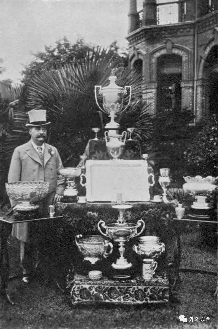 Arnld Wright 1908年在托益的花园里拍摄,那时候托益最开心,跑马赢来的奖杯,应该也有丰厚的奖金,他的孩子们和他们的仆人以及大洋车。