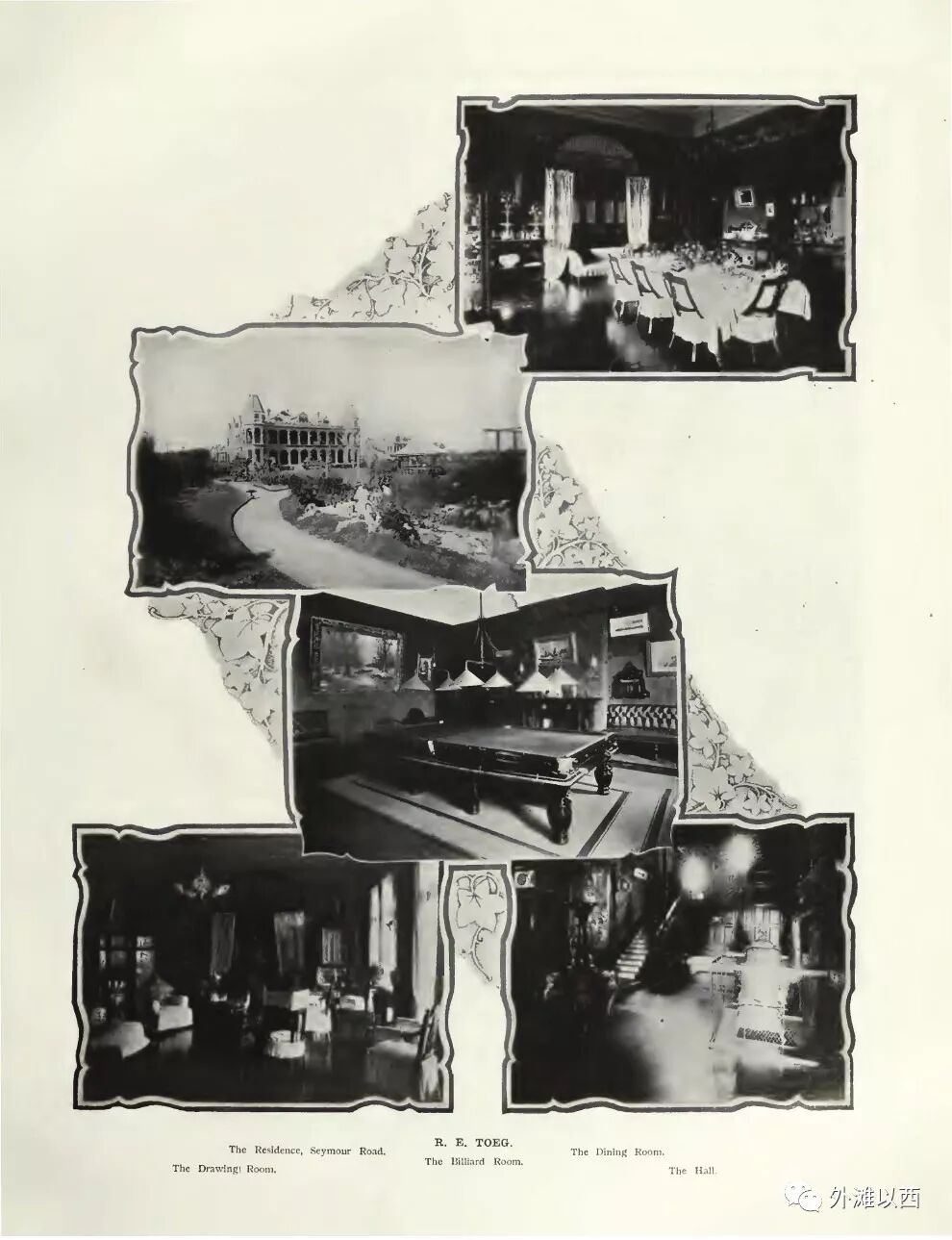 Ezekiel这个中间名也很有来头,希伯来语,可自行查阅:以西结。看多了陕西北路80号老照片以后,再在张霞的一篇博文发现了R.E.Toeg的名字,她发表的照片正好和那些流传的老照片对上了,我们顺着搜索了一下,有关托益更多的历史素材扑面而来,最有名的是1908年那本画册拍摄记录下了他家模样。那本书很有名,上海1900年代的大宅照片多取自这本书,先前我们报道过的担文律师华山路大宅(俗称大胜胡同德拉蒙特住宅)也出自本书,链接点进去看看:《重写一遍:给上海优秀历史建筑铭牌纠错 大胜胡同和北京神父有关系吗 百年前一个叫担文的英国大律师浮出水面》。