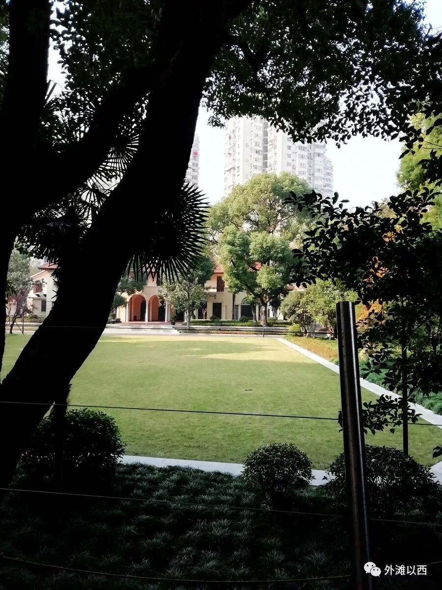 在高处俯瞰旧时代海关总税务司官邸超级花园大宅之前,我们在海斯大厦小区内转悠了一圈,由此体会当年大花园有多大,有研究者指出目前淮海中路1897号占地6亩,我们初步测算原始状态大概是30-36亩。娄老师说早年霞飞路或更早的宝昌路时期近郊土地收购价格很便宜,1947年上海行号路图录显示出的不规则地块应该也不是原始面貌。