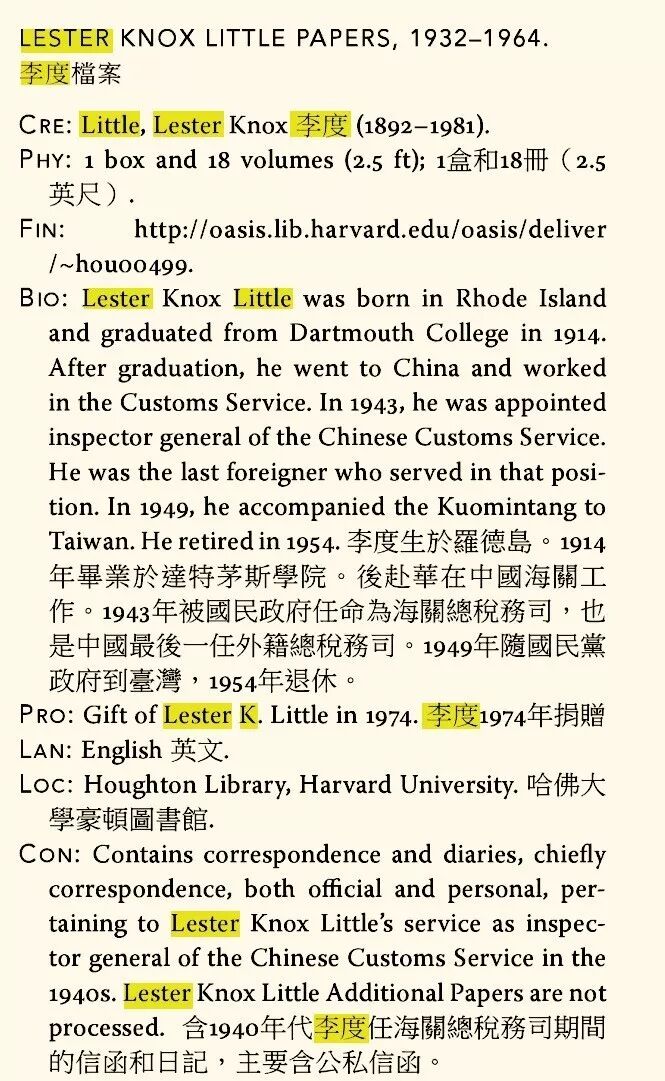 一部宏大的中国海关史浓缩在五个人的名字里,而在李度任期内,他又在想什么做什么呢?这些也都留在了他的日记里,The Chinese Journals of L.K. Little, 1943-1954: An Eyewitness Account of War and Revolution,愿意深入研究的朋友还可去哈佛大学图书馆查阅他捐献的档案文件。