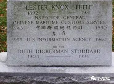 李度年轻时期照片,从“Find A Grave”网页上我们发现了李度的墓碑,他自豪地用中文写上“中国海关总税务司李度(1943年-1950年)”,从总税务司转身之后他回到了美国在中央情报局工作(1955年-1960年)。他去世后安葬Rock Creek Cemetery Washington, District of Columbia,华盛顿郊区岩溪墓地 ,他的生平介绍说他一生有三次婚姻,第一任太太Elizabeth King Fales Freeman,他们携手于1917年10月25日的上海,与第二任太太1940年在香港结婚,但不幸的是婚后第二年太太去世;第三任太太Mrs. Ruth Dickerman (Stoddard) Smith的第一任丈夫是Horace Harrison Smith(曾担任美国驻迪化领事馆领事,1943年-1944年)。