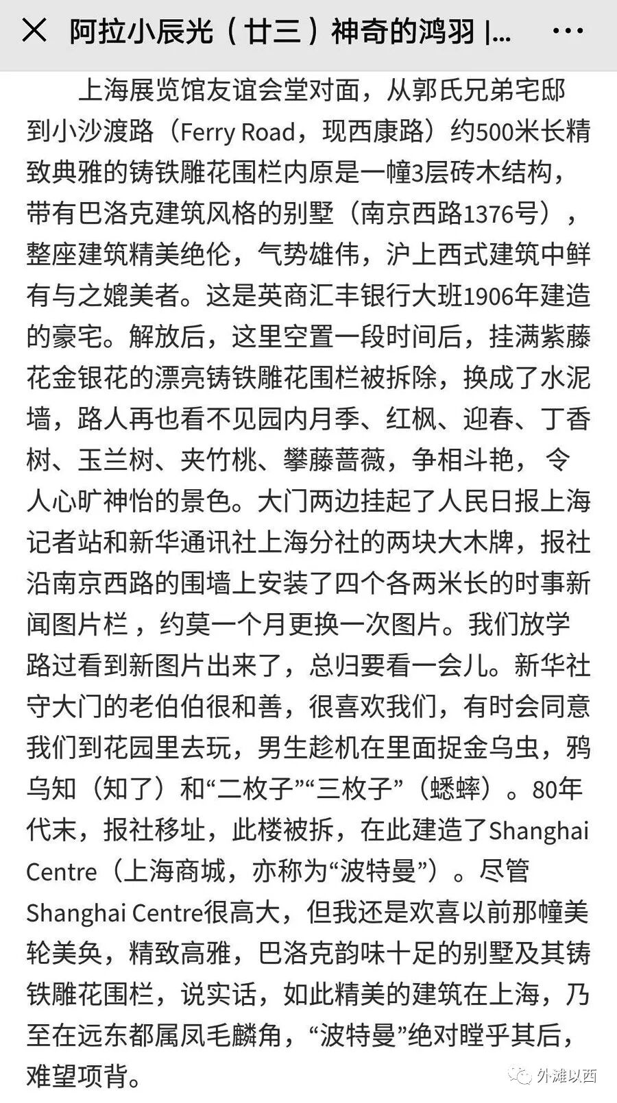我们在网络上还找到了一篇淳朴的回忆文章“阿拉小辰光(23)”,专门记录下当年小伙伴们在克莱格大宅的快乐时光。