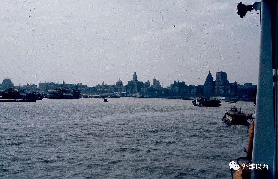 下图拍摄于1983年,从往来浦东浦西的轮渡上看到外滩天际线。