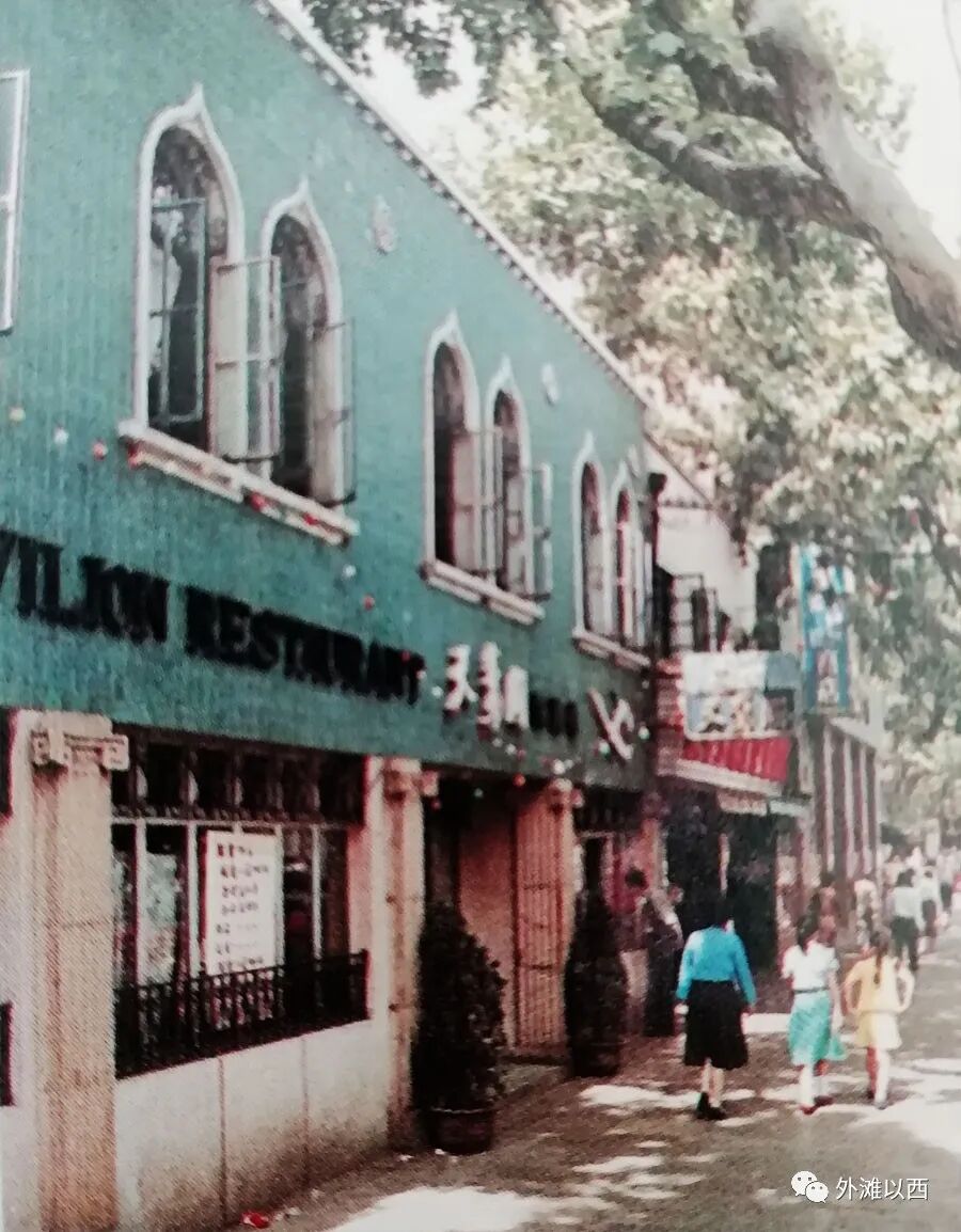 特地放大了老地图看红房子,地址是陕西南路37号,此地是力士汽车行的一个边角房子,当年那个意大利人办起了喜乐意(CHEZ LOUIS),属于神翻译,如果你脑子里没有红房子这三个字的话,按照CHEZ LOUIS 法语翻译过来就是“在路易家里”,家庭小餐馆,也许是他本人掌勺料理。现在我们能找到的最早彩色照片是1976年来复旦读汉语的英国留学生兰克拍摄。