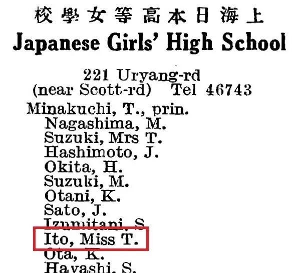 我们在1939年的小红本上和1947年上海电话号码簿上,发现了一个单位名称和一个日本人名字。单位名称待会说。日本人叫T. Ito。