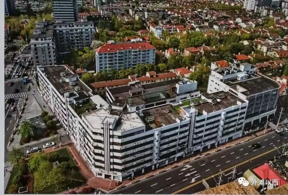 从乌鲁木齐南路上麦琪公寓远眺瑞华公寓和淮海大楼,曾用名Empire,中文翻译叫”恩派亚“、“帝国大厦”,早淮中公寓和淮海公寓几年建成。在淮海中路北、常熟路东,八字大开,从1931年开始,“恩派亚”已是本城地标建筑。当年很老实地遵循阳光权规则,建筑物由街角最高向两边跌落,照顾到早几年建造的瑞华公寓。
