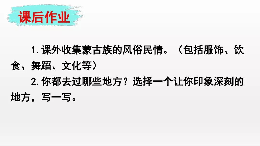 3.“蒙汉情深何忍别,天涯碧草话斜阳”,你从课文哪些地方体会到了“蒙汉情深”?生活中你也有过与人惜别的经历吧,和同学交流。