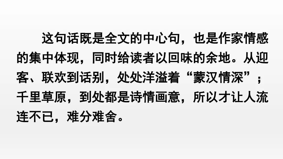 体会:这句话作为全篇的结尾,点明了蒙汉两族团结情深的中心。