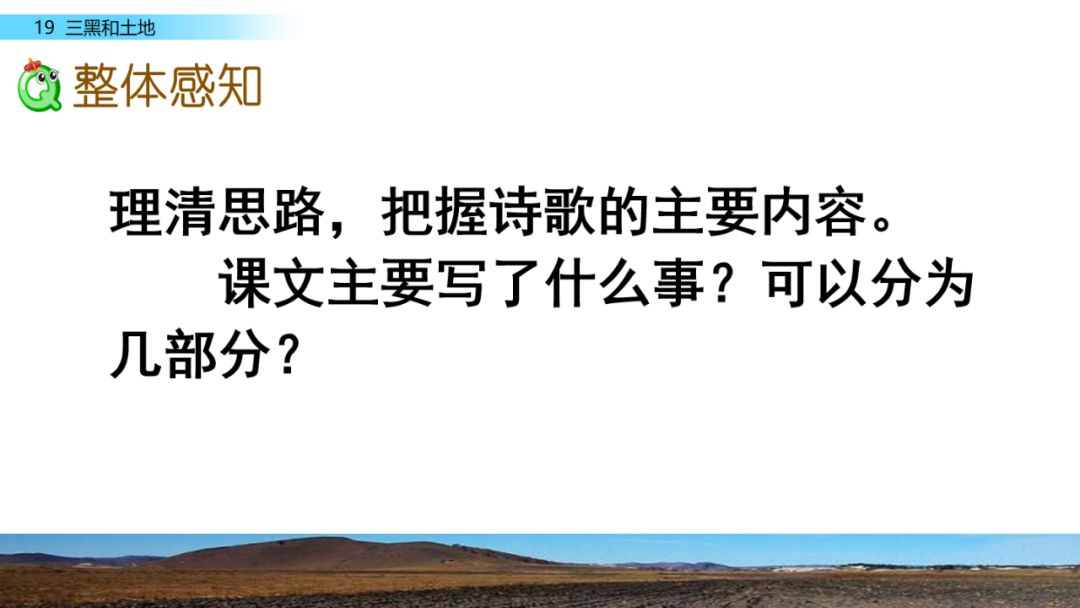 答:诗歌展现了四幅画面。小标题:(1)喜获土地;(2)劳动场景;(3)所见所闻;(4)未来畅想。