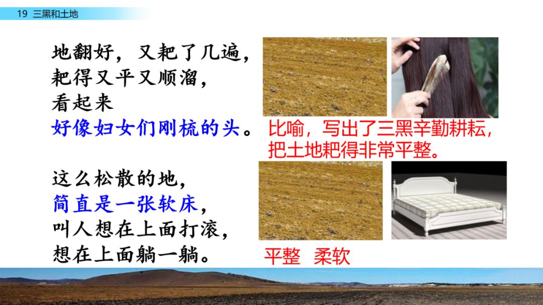 答:运用了比喻和夸张的修辞手法,营造了极强的画面感:农民有了土地像旱天的鹅见了水,“连头带尾巴钻进水里”,还恨不得尝一尝泥土的味道,变成种子在土里面躺一躺。农民对土地的珍视与热爱之情立刻由抽象变得具体可感。