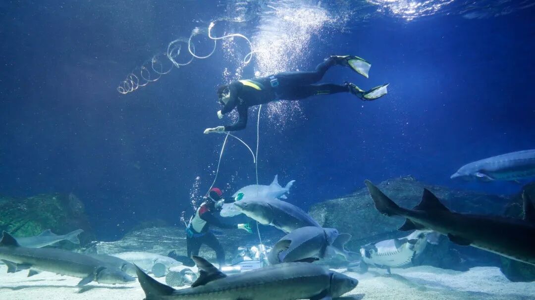 通过全透明的亚克力整体展窗可以和“水中大熊猫”中华鲟“零距离”接触~快与它们来一场静谧蔚蓝的约会吧!