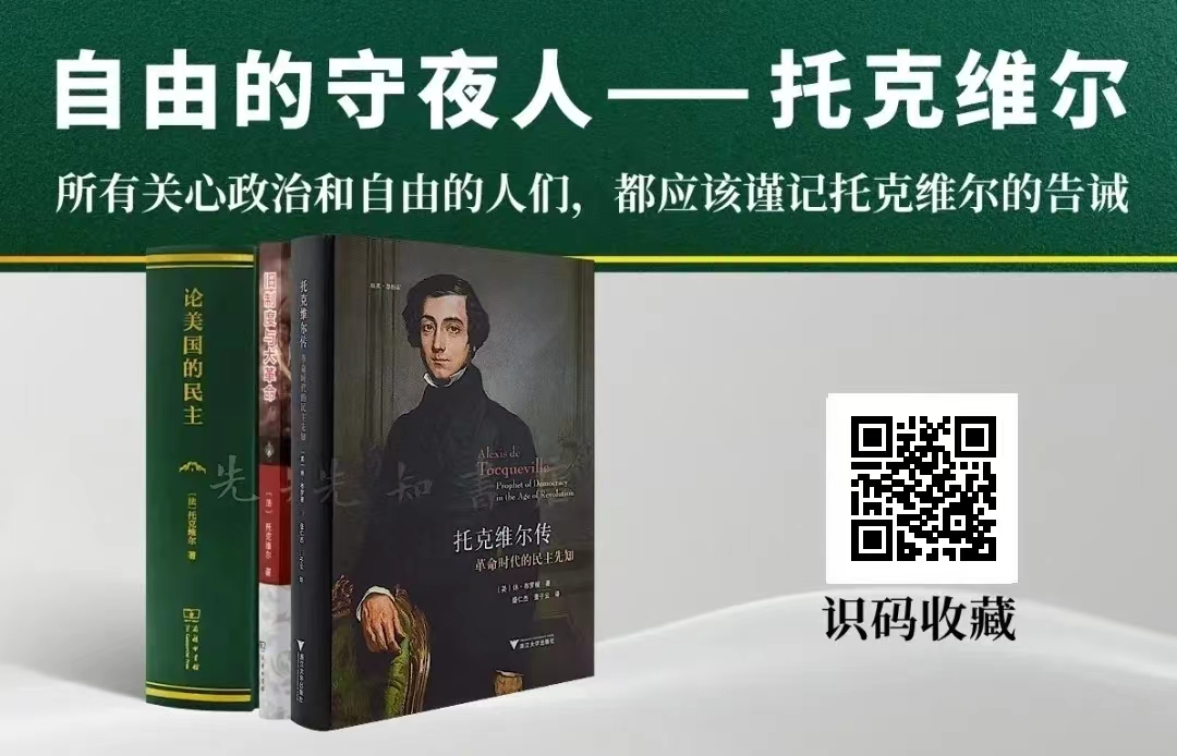 为此,先知书店诚挚推荐“托克维尔专题”:覆盖托克维尔经典著作及其生平,囊括托克维尔的重要思想。他对历史的解读隐喻了所有现实政治的逻辑,也为自由提供了最强有力解释。读懂托克维尔,不是读懂他这个人,而是读懂民主与自由。识别下图二维码,即可一键收藏。