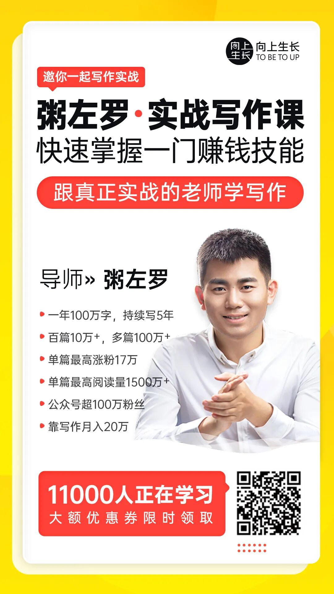 关注 ▲粥左罗▲ 和百万互联网精英,一起向上生长