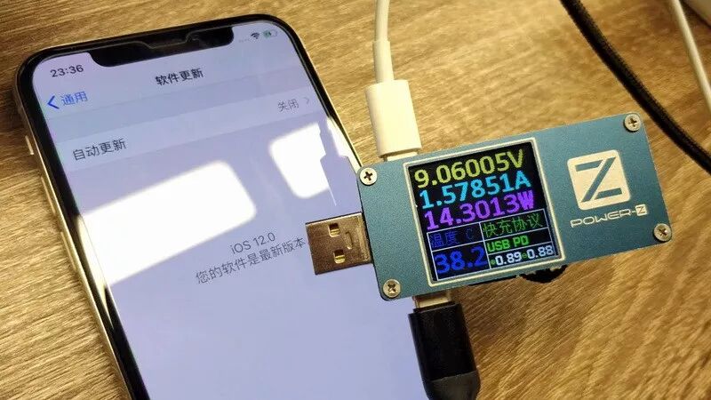 另外,iOS系统版本不同也会充电功率也会有微小区别,在iOS 11里USB PD充电峰值功率大约为18W+,而iOS 12峰值功率则提升到了20W+。