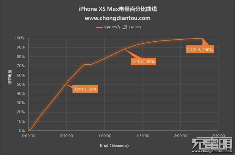之前,我们有谈论过iPhoine XS Max的充电速度问题,发现使用苹果30W USB PD充电器充iPhone XS Max时,只需半小时就能够把手机电量充到了50%,但是充满却花了两个多小时。