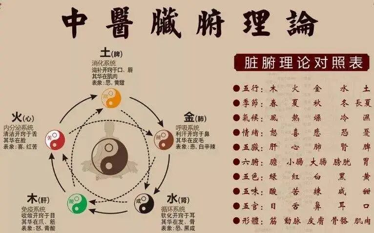 所以有十个天干数,代表十个天干。木代表肝,心脏是火,脾脏是土,肺脏是金,水是 肾脏,同样的,水又分阴阳,五行都有阴阳的现象。那我们讲的脏,就好像收藏的藏。五个脏,就是收藏,就是阴。腑是消化系统,就是所谓的阳,这里面阴木就是肝,阳木 就是胆,阴火就是心,阳火就是小肠,火有两个东西,心脏是一个,小肠是一个。脾土就是阴,脾是内脏,和阳土相对,就是胃。肺是阴脏,所以肺脏是阴,阳是大肠,水就有阳水跟阴水。如果我们讲脏的话,就是阴,腑的话就是阳,所以肾脏的话,就是阴,阳水就是膀胱,代号有他的意义,我先用个例子你听, 为什么我们中医把心脏定义为火?因为心一直跳产生热,西方医学不是这样子,一看,你瓣膜闭锁不全,你有心律不整,你有心肌梗塞,动脉血管硬化,西医都是看到结构上的问 题,也就是只看到外形。所以西医定的病名都是形,他没有神。好像讲得很详细,但只有形, 没有神。就是因为心脏不断的搏动,一天大概十万次以上,你想想看心脏不断跳,热不热? 既然热的话,我们没办法讲,只好用“火”来代替,对不对?所以体温的来源,来自心脏, 因为心脏不断的搏动,全身上下,就是心脏不断地跳动,西医只知道后面,不知到前面,体温华氏 98 但体温怎么来的不知道,它是由心脏来的。小肠在这边,小肠是阳火,因为是消化系统,食物到胃里面,到小肠里面,小肠把食物 消化掉。为什么把小肠也定为火呢?因心脏跟小肠是表里,像这种关系我们叫表里关系。中医讲表,讲的是腑,讲里的时候,指的是脏。心脏和小肠通通被定义成火,小肠是第二个心 脏,心脏产生的热,按照道理,热应该是往上走的,你没有听过冷气球,只有听过热气球上 升吧!所以,热本生的性是往上升的,那光上升不行,每天都会过热,一发高烧就走人啦。 脑袋烧坏掉了!所以,制造了肺,肺是金,在阴阳五行里面呢,火是克金的,而两个相互制衡。肺好像天空一样,天上都是寒冷的嘛。把心当成引擎的话,肺就是水箱,肺如果只有呼 吸,那就太简单了!你要有肺跟心脏有制衡的观念,正常肺的功能,肺会让热往下走,练气的人让气往下走,丹田是小肠的募穴①(经穴分类名。指脏腑之气汇聚于胸腹部的一些特定穴位。五脏、心包络及六腑各有募穴一个,如肺为中府,心为巨阙,肝为期门,脾为章门,肾为京门,心包为膻中,胃为中脘,胆为日月,大肠为天枢,膀胱 为中极,小肠为关元,三焦为石门穴等。募穴多用以诊断和治疗本脏腑病证。),让气就往下走。因此小肠的温度,就变得非常的热, 原来热的来源是来自心脏。什么叫正常人,我在临床上常问病人,谁告诉你有肝病?答,肝病专家。外面的招牌都是专科医生,而我是健康医生。中医跟西医正好是相反的,西医是把病复杂化,中医是要知道什么叫做常人。如果你被训练出来,一开始就查病,查了半天还是 看不好病。如果你是被我训练出来,是不是不正常,你一看就知道了!中医不是要你看多少 书,而是你要“悟”,悟最重要!我是想办法让你知道什么是正常人。心脏的火往小肠下导,所以,正常人的心脏和小肠是一样的速度、一样的温度、一样的 压力,所以中医是物理医学。爱因斯坦是一位物理学大师,他一辈子没有上过太空。登陆月 球是阿姆斯特朗,对不对?他的办公室很小,光用黑板、粉笔,就可以算出黑洞,从 NASA 收到的数据,就可证明爱因斯坦是对的。中医就是物理医学,物理学非常注重,时间、速度、温度还有压力。他没有去过黑洞, 就可以算出来。中医就是按照时间、速度、温度还有压力,你的身体就是一个小宇宙。小肠因为有这个热,食物才会消化。小肠那有那么聪 明,竟然会消化食物?你把小肠拿出来,看它会不会消化食物,一但失去温度它就不会消化 了,正常人是这样子。所以小肠被定义为火,那食物消化以后,会进入到大肠,大肠会把食 物的水拿走。你吃猪大肠试试,大肠那么聪明会把食物的水拿走吗?大肠环绕着小肠,小肠 是火,水在上面走,火在下面烧,大肠的水因为很热而气化。所以这个蒸气才能透过肠壁上 升,大肠与肺相表里,水会再回到肺里面,变成正常的津液,残渣才会排出来,这过程在二 十四小时一定要完成,这是一个初浅的概念。慢慢讲到《黄帝内经》,我们会讲得越来越深。中医为何可以治疗癌症,很简单,你们 听过人死在乳癌、肺癌、淋巴癌、肝癌,却有没有人死在心脏癌?只有死在心脏病,而不是 心脏癌。心脏不会得癌,因为心脏很热,癌细跑经过心脏,像飞蛾扑火一样。若把全身从头到脚变成像心脏一样,很热,癌细胞就没有了。人身体很热,怎么证明,冬天一吐气,若吐出来不是白色的蒸气,那个人是火星人,就不是地球人。人都会有气,所以气是热的,中医 的观念是热气,就是蒸气。这是我简单举的例子。比如说水生木,膀胱在小肠前面,膀胱在这,小肠在这,在肾脏这边第一次气化,在小肠里面是第二次气化。《黄帝内经》以后会讲的更详细。小肠很热是火,当膀胱有 400CC 的 尿时会把膀胱撑起来,膀胱变成热气球往上升,没有到 400CC 容量的时候,我们不会有尿 意,不会想小便。一到 400CC 满啦,就急着要上厕所。小便出来时,因膀胱的热气,才有 办法产生速度,力量、压力,把小便排射出去,在膀胱气化的过程中间是第一次蒸馏,在第 二次气化时,浊水会排出来。而干净的水会交给肝,肝得到干净的水(水去生木),就可把 毒排掉、再交给胆,化成胆汁。人体很复杂,如果不用这个图