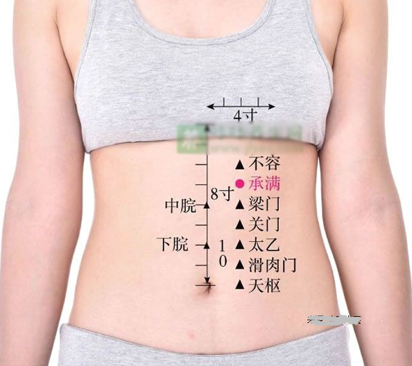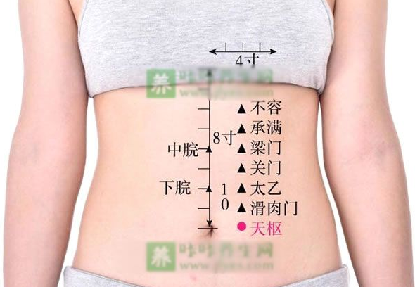 那这个承满,后面的穴道呢,从不容开始,我们回到胃经的走向是这样子,我们以男人 做标准,会比较清楚一点。这是肚脐、乳头,由胃经下来到乳根。这边是任脉,如果以男人 扎针,两乳中间就是膻中穴,这两间相距是四寸。二寸就是三个指头。不要买个尺,没有那么笨的人。当你知道大概位置在这里后,开宗明义就告诉你,穴道在两条肌中间。像男人肌 肉比较大一点,你把拉过来一点,反正在肌肉中间嘛。所以每个人都不一样。到了乳根穴以后,进入不容,就是巨阙穴旁开。我们从肚脐和心蔽骨中间,叫中脘,中 脘跟心蔽骨中间是巨阙,在任脉上面,从巨阙外开两寸是不容。不容就是食物不容纳嘛!吃 东西很胀,不能容纳,就在不容上治疗,这是所谓的近取穴。不分虚实寒热,只有在手脚上 面,才有子母补泻。比如说有一个太太找你,说我心口很痛,喝水就吐。心口痛 ,就是心脏巨阙,喝水会 吐 就是不容啊!所以,中医针灸穴道有它的名称和意义。承满就是上脘旁开,神阙跟中脘中 间就叫上脘,上脘旁开两寸叫承满,书上是写三寸,实际上是两寸,我们要更正一下。承满 的意思是你吃一点就饱了,胃口不开,吃不多,一下就饱了,这是近取穴。再来呢,我们从中脘穴把图放大,这是中脘,这是神阙,所以你们现在知道,我们要先教任脉,教过任脉后,你们才有办法找穴道啊。再来是关门、太乙、滑肉门。你们看这关门穴,顾名思义,就是不想吃东西,吃东西就 想吐,跟不容一样,你知道就好了。以任脉的穴位为准,这些穴道为辅,比如胃痛 扎中脘, 如果扎完还有痛,可以在旁开两寸的穴道再扎。我们隔盐灸神阙,灸完后,肠鸣腹泻 还有就可以配合天枢穴。太乙和滑肉门都可以用 在长高 ,下针,灸都可以。小孩想长高,你可以帮他灸。现在诸位学到三个穴道:身柱,脊椎第三椎,可以长得高大,再来是太乙跟滑肉门,这 是我们可增高的穴道。灸完胃口大开,再灸身柱,小孩子就会长得人高马大。千万要记得, 头脑也要好,不能只有四肢发达。天枢这个穴道,正在神阙外开两寸。《针灸大成》刚刚写三寸现在变两寸,实际上通通 都是两寸。天枢穴左边一个右边一个,是大肠的募穴。我们讲募穴的时候,以后会讲到俞募 治疗法,大肠的俞穴加大肠的募穴就是俞募治疗法。大肠的募穴还有一个意思,当病人便秘时,不是讲完便秘 就结束了,这才刚开始。我 们要确定便秘是堵在大肠、小肠或十二指肠里面,还是在胃里面等等,后面会慢慢讲到。我们要怎么知道它是堵塞在大肠里面呢?就看大肠的募穴天枢,手放肚脐旁,一按天枢, 病人大叫一声、惨叫,这是燥矢,就是病人有宿便,就是干的大便嘛。硬的像石头一样,会 硬到什么程度,会硬到排出来时,就像石头掉下来,丢到墙上还弹回来。这种燥屎若不出来,会让人发精神病,我们的横膈膜在这边,小肠是火,食物跟水的残 渣在大肠,小肠火在下面烧,水会因此气化上来,气化上来以后,有大肠的燥气,很脏的气 在里面,这横膈膜会把浊气隔掉,让气不会往上走。只让清气上升。当燥矢太强时,横膈膜 挡不住了,人就会发狂奔走。你到龙发堂看看,十个病人九个便秘。没有便秘的,那个就是 假的。今天我杀人了,我就跑到龙发堂逃难去了。也不用心理医生去辅导了。病人每天都有 大便,他是假的精神病,结束了。所以说中医很好,懂医学或生理学,一看就知道。穴道可以帮我们诊断,那怎么知道病人大便排出来了没有,一压又惨叫,那就再治疗, 若压了软掉了,那就是宿便排掉了。我们宿便有两种,一种是寒,一种是热。寒的定义是大 肠没有蠕动了,没有蠕动了就累积很多了啊,但病人不会感到难过。一种是热,肠子有蠕动, 但大便排不出来,所以肚子会痛,小朋友半夜肚子痛,就是热,这就讲完了。有东西在里面, 不管寒热,就叫实。便秘时肚子痛就叫热实。还有一种是寒,叫寒实,寒就是没有动。若还是搞不清楚,看 小便,热实的病人,小便是黄褐色的,寒实是清白的。大肠堵住时,到底可以撑得多大,美国有一个很有名的影星约翰伟恩演牛仔的,你记不 记得他肚子很大,枪袋都带在下面,他死掉以后,法医把他肚子打开来,宿便有 40 磅。因 为他工作很辛苦,沙漠中待得太久,水份都没了。也可以知道那边的医生很烂。天枢穴很好用,为什么我要教各位辨寒热。如果是寒症,在天枢上面灸比针好。如果是 热实,下针会比灸好。若热实你又用灸的话是火上加油,会更干。寒实我们灸天枢,当然是 隔姜灸。临床治症的时候,病人说我胃口也不好,又有便秘,肚子又痛,小便又淡白。你怎么处 理。这是肚脐,这是中脘,中脘是肚脐上四寸(胃的募穴),肚脐下三寸是关元(小肠的募)。 肚脐左右两寸是天枢(大肠的募),是这四个穴道。小便淡白的时候,灸天枢,其它用下针。小便是深黄色,我们知道是实热,下四针,胃、 肠一起治。腑病最好治,当然这是近取穴嘛,没有什么虚实补泻,针下去左转右转就好了, 病人感到酸麻胀就好了。那从天枢穴往下走。看!这是神阙,这是曲骨。现在知道为什么先讲任脉,神阙到曲骨, 用目测的,看三比二,这交接的地方叫关元,关元是小肠的募穴,这两个中点叫石门,这两中点叫阴交,中间是气海。从阴交穴外开两寸叫外陵,天枢、外陵、大巨、水道、归来、气冲,一路下来二寸全是 阳明经。病人说这里痛,你一看是胃经,就结束了。所以经络要强,针灸经络学不强,只会 开处方,诊断实力就不够。![]()