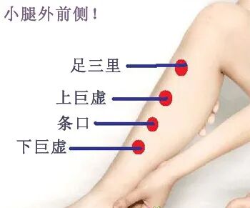 西医是捉病人去验血,看有没有发炎,有时候验血下去开下去还不是盲肠炎!中医不是, 中医是叫腿伸出来,男左女右,男的看左边,女的取右边。足三里找到后,在它下一寸的上、 下都找压痛点。如果有压痛,就是盲肠炎 。这是很肯定的,它是 100%。人体不能相信仪器,仪器会有错误。那这个病人在阑尾穴有压痛点。我刚才讲到穴道可 以帮助诊断、也可以帮助治疗。你一压,病人惨叫的很大声。意思是告诉你“给我一针”。 你一针给他下去,要下得准啦,手都按到痛点,再下不准,我没有办法教你啦!下针下去的时候,引到气就好了。痛人的痛会当场去掉,一般盲肠炎病人会像虾子弯起 来,因为弯起来比较舒服一点。痛去掉以后,为确保从大便清出来,可以下大肠募穴天枢, 小肠募关元。当然,后面我们会教到如何治腹膜炎,当病人从盲肠炎破掉时,病人会变成腹 膜炎,这中间症状不太一样。腹膜炎是原本肚子剧烈痛,到后来痛突然瞬间消失了,因为原 本盲肠肿的很大,还没有破,所以病人会很痛。后来一破,因为压力没有了,大便都跑到腹 腔了,所以没有痛了。病人会以为他好了,实际上散开来,但一动就痛,就是腹膜炎 了。如果你给西医治,很简单啊,就躺一个月,一直打抗生素。中医看有没有腹膜炎很简单, 看肚子是凉的,但这边是烫的,知道里面是破裂,好不好治?很好治!不难的!在教各位《金 匮》时会讲到,在这不讲处方。如果痛,都可以下针,天枢、中脘,关元、足三里、阑尾, 都可以下针。13、上巨虚、条口与下巨虚(3-02:16:58) 再来是足三里下三寸,三寸的距离,我们叫上巨虚。那再下三寸,我们叫下巨虚。下巨 虚上一寸叫条口穴。上巨虚穴顾名思义,对我们乳房的硬块很好,把上面巨大的东西虚掉了, 听懂了吗?下巨虚呢?肚脐以下硬块 ,比如女人子宫卵巢有肿瘤在这边,可以在下巨虚治疗。当我 们发现实症,实就是有东西。虚呢?就是没有东西,就是无。遇到实症是用泻的手法,泻时 逆向行针,补泻做完再往前扎一点,就是泻。点此留言及查看。