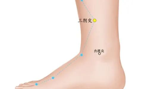 几乎所有妇科的病都可以用三阴交。但如果三阴交下去,腹不痛了,但滴漏仍不止,那就下隐白。中医认为血无止法,生病时没有止血的药,只有消导的药,让血自然停了,不要 让本来要排出的血流在身体里面,这血要是留在里面,以后会做乱的。这样讲的话,你们就很了解这个中间的过程。看《针灸大成》三阴交的第四行,中医不 赞成月经期间行房,因为经血是往下走,行房会影响月经往下走,因为你行房你会很亢奋啊。 所以不要在月经来时行房。那水肿 ,脚积水,也可以用三阴交,这是消导。小便不利 ,也可以用三阴交。因为三 条阴经经过,同时又主少腹。小便不出来,也可以用中极,因为中极是膀胱之募。都下的话, 当然更好啊!小便不出来,是因为膀胱太冷了,而膀胱太冷是因为小肠的温度不够。不够以 后,这小便在膀胱里面是冷水而不是热水,冷水在里面会造成频尿,这时再灸关元。穴道要很活用啊!书是一个方向,不能被书绑死。我要把你们训练到你们在大树下就可 看病,这才是中医嘛!三阴交就是属于阴经的穴道。平常妇女、小姐可以多灸三阴交,三阴交是妇科大穴。诸 位以后到了老的时候,不管男的女的,49、50 岁的时候,男的当然没有更年期的症状,但 你会面临到更年期的压力,因为你太太有啊。所以说你要知道一些穴道,像三阴交、隐白这 些很好的穴道,中极、巨阙都可以用。女人进入更年期后,晚上回家向左边睡,平时人要向右边睡,右边是气左边是血,晚上 睡,为了让血归肝,所以要往右躺,血在上气在下,这样肝才会很强,但更年期的妇女要反 过来,这样不会有潮热的现象。我们有天、地、人三皇。三皇穴中,三阴交叫人皇,等一下会介绍地皇和天皇。