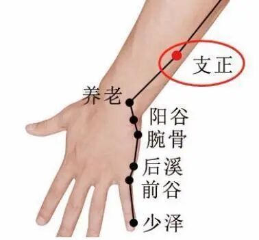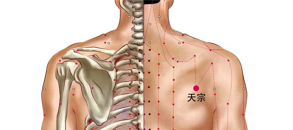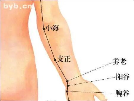 再上三寸叫肝关。像肝癌到后来非常的疼痛,西医会开吗啡止痛,如果痛右边,就下左 边的肝关,针下去平补平泻,痛就慢慢去掉了。如果是右边的痛,可能是被马踢到、摔到等 等,或肋间痛,我们都可以在对侧的肝关下针。正好在胸胁的地方,都可以下肝关。肝病 也 可以下肝关。因为是经外奇穴,所以无所谓补泻,平补平泻。心关呢?就是治心脏病 的, 也无所谓虚实,不管是心脏的虚症或心脏的实症,都可在心关下针。支正穴在阳谷穴上五寸的地方,在骨头的外侧。支正是小肠经的络穴。支正是虚实都可 以用,你看第二行,实则节弛肘废,手臂没有力气,泻之。虚则生疣,生了很多疣在皮肤表 面上,都可用支正。再来是小海穴,小海穴是小肠经的合穴,也就是小肠经的子穴。我们称之为小海,小海 穴是小肠经的子穴。小海穴怎么找,将手肘弯起来握拳,这边有两个骨头,手这有个骨头, 这边也有个骨头,将两个凸出来的骨头连成一条线,做成一个正三角形,这个三角形顶点的 地方,叫做小海。所以,你如果压到小海,压一下,筋就麻了。小海压会很麻,以前小时候 常常玩,小孩子很皮嘛,这就是小海穴。小海也是小肠经的子穴,子穴顾名思义,小肠经的 实症在上面治,像身上生疣 ,就可以用。就是小肠经的实症,都可以用小海来治。手部的针,你们用一寸半的针,但小海不用一寸半,用一寸的针就够了,一下子就下到 了,很浅。 看我画的图,这是人的背面,这是肩膀,这个后脑,这是耳朵。肩膀跟肩头这边,你将 手抬平弯起来,肩头凹进去的地方,这是属于大肠经的肩髃穴,从肩腴穴往上走,这有个骨 头,走到内侧的骨头这边,有个骨缝,我们称为臑腧。从臑腧往下走三寸,就是我们现在讲的肩贞穴。这个距离是三寸,所以大肠经跟小肠经 非常的接近,在大肠跟小肠的中间,就是三焦经,我们三焦经还没有介绍到。那这是臑腧的找法,所以要先找臑腧,再从臑腧下三寸找肩贞穴。这些穴道你们知道就 好了。有时病人说,我痛到后面去,指的地方正好就是臑腧、肩贞。一般很多人会痛在臑腧。 我们一看是小肠经,问他“痛多久”,痛三天,就下小海。三个月,就下后溪。穴道就这样取的。看身体那边痛,我们再扎对侧。不要书上写治肩,而乱枪打鸟,看到书上写治肩而下了 三十几针,病人起来后还是痛,因为没有扎到小海,知道我的意思吧。现在的针灸就是这样 子,所以他们的书我看不懂。因为我看古人的书不是这样讲,为什么他们会把书读成这样子? 所以现在诸位会选穴了,一针就够了。这些穴道要知道,虽很少用,但大都可以帮助你辨证。臑腧是手太阳、阳维脉、阳蹻脉的会穴。书上的治症看一下就好了,记不记得无所谓。再来是天宗,这个天宗穴很好找。我们在肩胛骨,两边都有两个肩胛骨,你摸上去,会 有两个三角形。在这肩胛骨的正中间,就是天宗穴。在这扎针的时候,旁边的骨头很大,虽碰到骨头,但不会碰到肺的部位。天宗很少用, 但你要知道只有肩胛骨旁边的痛,都属于小肠经。大肠经在前面,小肠经在后面,中间三焦 经。现在你不会说病人这个地方痛,结果扎到大肠经上面,这是鸡同鸭讲,这就很差了。也 不要看书上所有治肩的穴道都下,这种也很差,可说非常差。再来看曲垣跟秉风。曲垣跟秉风怎么找?我们先找肩井,肩井本身是胆经的穴道,但我 们先介绍,这样穴道会比较好找。肩膀这有个肌肉,这有个三角形,正上方最顶端,在这个缺盆骨头跟颈部正中间,这有 个肩井穴,所以肩井穴摸都可以摸到。肩井穴正好在肩膀的上方这个地方,肩井不能重击, 但可以下针,但不能太深,因为它是肺的上端,下太深会伤到肺造成肺气肿,要特别注意。 找到肩井穴后以,从肩井穴往后,直下三寸,就是我们现在介绍的这个曲垣。从曲垣再旁开两寸,就是我们讲的秉风。中间差三寸是三焦经经过的地方。 秉风和曲垣都很少用,但你要知道。所以如果病人说肩井上痛,就是胆经,后面这边痛,痛到三寸的地方就是小肠经。在三寸跟肩井中间就是三焦经。所以,确定是那一条经产生的 痛,我们在该经的子穴或母穴做补泻,或者在原穴上做补泻就可以了。原穴是阳经才有,阴经没有原穴。