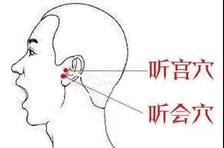 再来是听宫,听宫用到的机会就多了。 在耳朵前面有一个像山峰的东西,叫耳屏,像个屏风一样嘛。所以叫耳屏。前面有个骨缝,要张口才能找到。先闭口,再嘴张开,就有一个骨缝跑出来。以前面这个骨缝为主,分 上中下,上面叫耳门,中间是听宫,下面是听会。