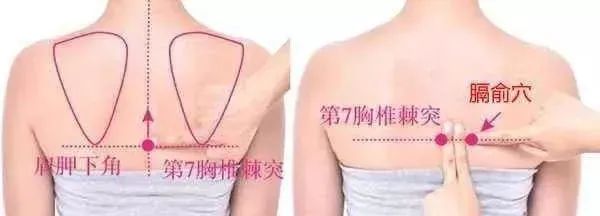 我们两个肩胛骨,把肩胛骨底端画条线,跟脊椎骨交接的地方,就是第七椎下。
