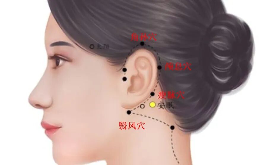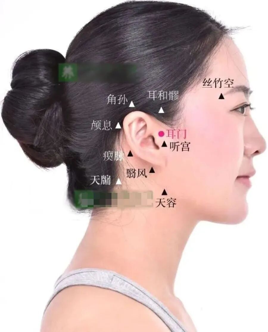 和髎穴在脉的下方,一般来说下针的时候,手摸上去,先用指甲把脉推开来,针就下去 了。你们千万不要按着脉下,按着脉下就直接扎到动脉上面,会造成淤青一块。像和髎、耳 门、听宫、听会都是所谓的近取穴。遇到耳朵流脓、耳朵发炎 、耳鸣 ,耳聋 ,到底要扎 哪一个。临床上我们在做的时候,我是今天扎耳门,明天扎听宫,后天扎听会。要轮刺,不 要老是扎一个穴道,不要那么死脑筋,我偏要扎耳门不可,扎了皮肤都硬成一块,扎太多针 皮肤会硬成一块。我是采轮刺的方法,这是第一个。第二个,在耳朵旁边,三焦经有很多穴道,到底那个 穴道是最好的穴道,我是用指头去按它,指头按它的时候,那点特别痛,就是阿是穴,就在 那个痛点下针。因为很多穴道都很靠近,它的功能又很雷同。你怎么去分呢?你就出手去压, 所以最重要的是你要知道经络的走向。头痛也是这样做。和髎像书上写的,牙科病如牙痛、头痛、耳朵流脓。一般来说我们治 疗儿科耳朵里面化脓出来是用麝香矾石散的喷剂,我们用麝香、矾石。矾石过去是用白矾, 最主要的目的是能够防腐,麝香一点点就能通利九窍。这两个东西喷到耳朵或鼻子里面,我 们可以保持它的干燥,这是外用的。我们用下针的时候,小孩子采单刺,下针时要把嘴巴张 开来,不要让它嘴巴闭起来刺进去,否则骨头会把针夹住。耳门呢?像耳朵耳鸣啦,不管是蝉鸣或各种耳鸣的声音都有,有的像鸟叫,有的像火车 开过来的声音,这些都没关系,治症治法是一样的。基本上的大原则是,肾其华在发,开窍 在耳朵。所以以强肾为主要的治法。其它临近的穴道,随机对症来取穴。这边汗比较多,一 般都是禁灸,硬灸个水泡也不好。写留言