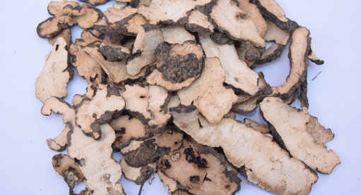 紫崴,长这个样子。这药呢是行血通瘀的药,妇科我们常常用通经,月经没来,好用紫崴。紫葳我们取它的花类。因为是花类所以它走皮肤,走鼻子,所以它能够治鼻子的问题皮肤的问题,由于它能够行血通瘀,所以乳癌乳房硬块统统可以使用。它又有个名称称为凌宵花,它是味酸的,性微寒。你看它的颜色是紫色,它能够行血通经,去瘀血。所以妇科使用的比较多。你看那个大明说,酒糟,热毒蜂,赤蜂都可以使用。我们在这要更正一下。秦椒呢,就是开刀以后伤口长得很大,皮肤有红红的一条一条的鲜红色粉红色的,我们用秦椒。那是内服,有外用的,但不是秦椒也不是秦皮,用僵蚕,我们外面用僵蚕,僵蚕收疤的时候,收得疤皮肤颜色很漂亮。那秦椒秦皮呢我们可以做洗眼的药水用。216猪苓,这猪苓长这个样子,当初名字为什么叫猪苓呢,因为猪苓这个药是长在松树下面的根旁边,那长得很像山猪的大便,看上去象猪屎嘛,你不敢摸,怕摸到猪大便,就这样把它定名叫猪苓。这个猪苓呢在经方里面是个利尿剂。