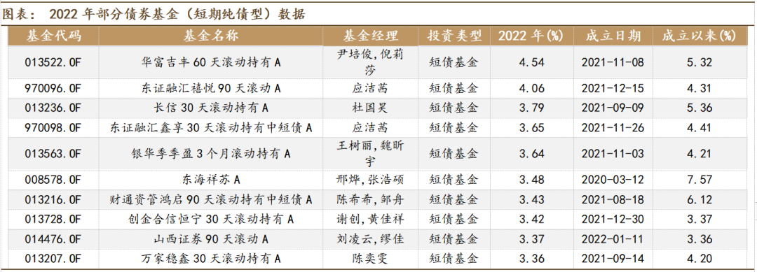 统计范围:短期纯债型基金中,规模大于2亿、非定期开放式、非定制(单一持有人占比大于85%)、成立日期早于2022/1/1,并剔除净值有明显异常波动的基金