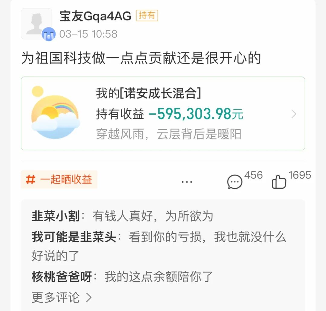 最近几个月,一说起基金股票,大家都是满满的负能量,留言区也有大量韭菜出没,一片哀嚎: