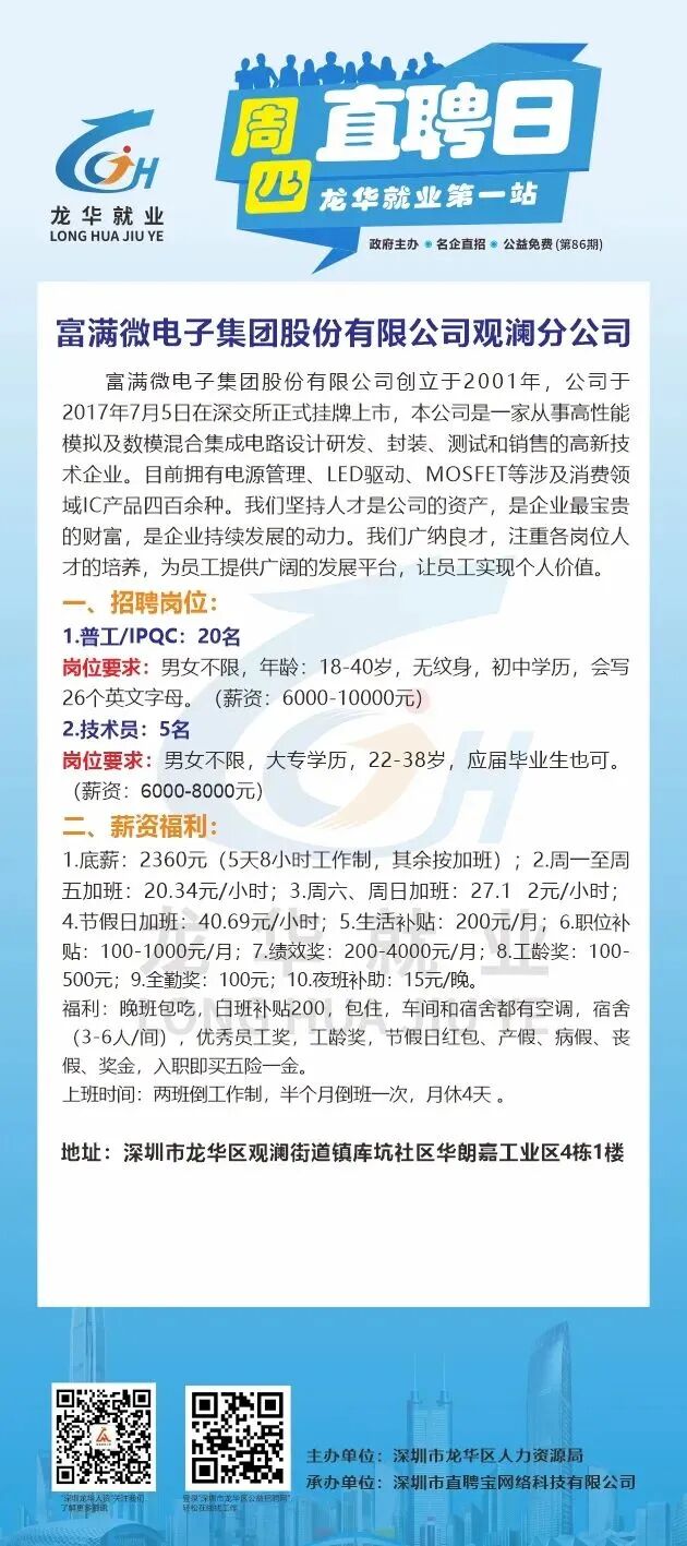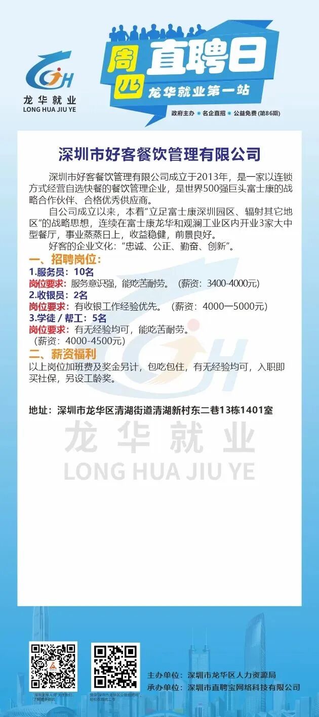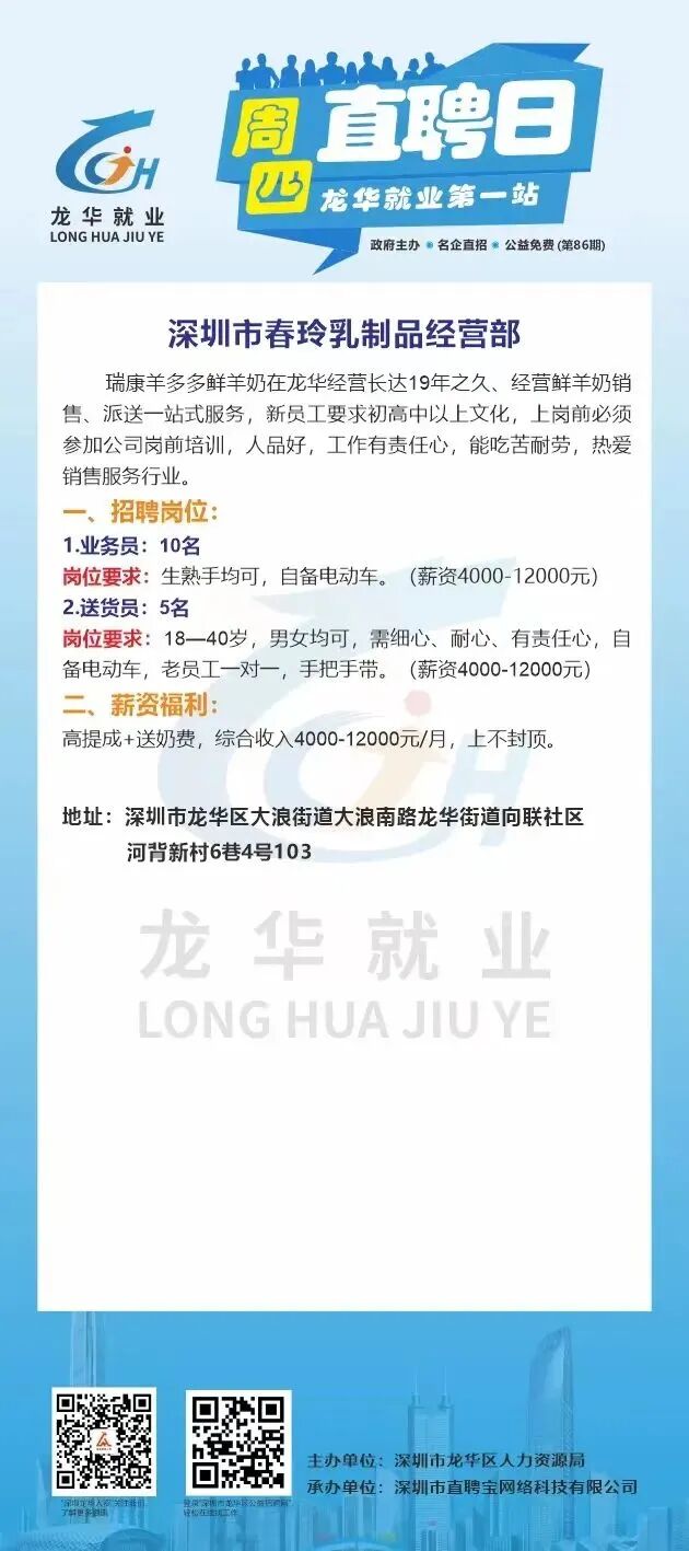 此次招聘活动不限户籍,面向广大有意来龙华就业的求职者,包括但不限于龙华区企业务工人员/灵活就业人员/高校毕业生/龙华区及对口帮扶地区户籍居民/残障人士/退役军人、随军家属等群体参加。