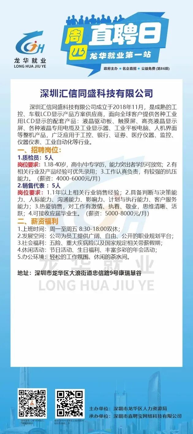 以下是参加活动的10家企业招聘信息!来找工作的小伙伴们,记得提供24小时内核酸检测阴性证明,并带上简历准时去龙华就业第一站和企业HR面谈哦!