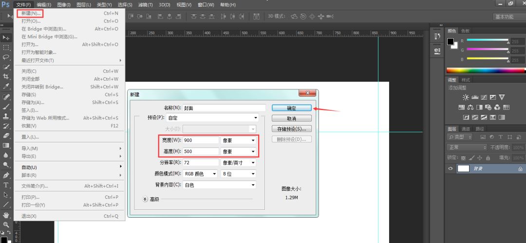 打开ps,新建一个900*500像素的工程。