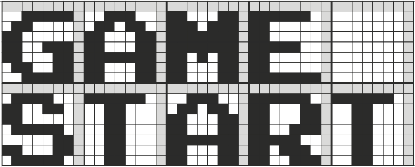 早期的街机游戏没有排行榜,因为存储器中的每一比特空间都很珍贵。在这款早期的《贪食蛇》游戏中,图像数据极少,以至于不能算作一款字体:只有一个「GAME OVER」字符,数字 0 到 9,仅此而已。其他的图像数据与文字无关,实心和空心箭头用于区分两位玩家,砖块用于标示游戏区边界,以及蛇的轨迹,半调网格会在玩家撞击障碍物的地方闪烁来指示死亡。
