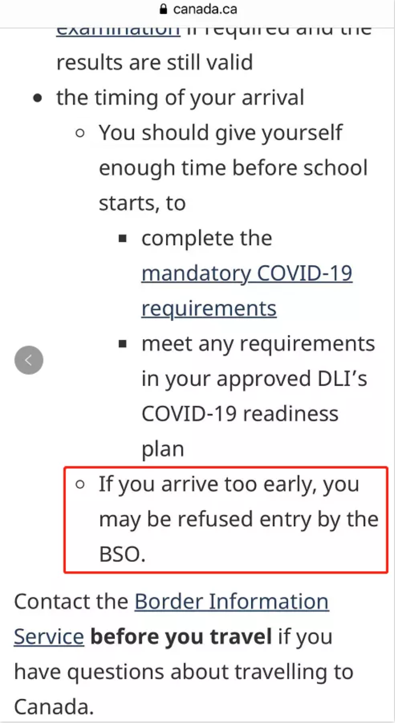 而在加拿大政府官网上,还真有这么一条——入境太早可能会被拒绝入境。