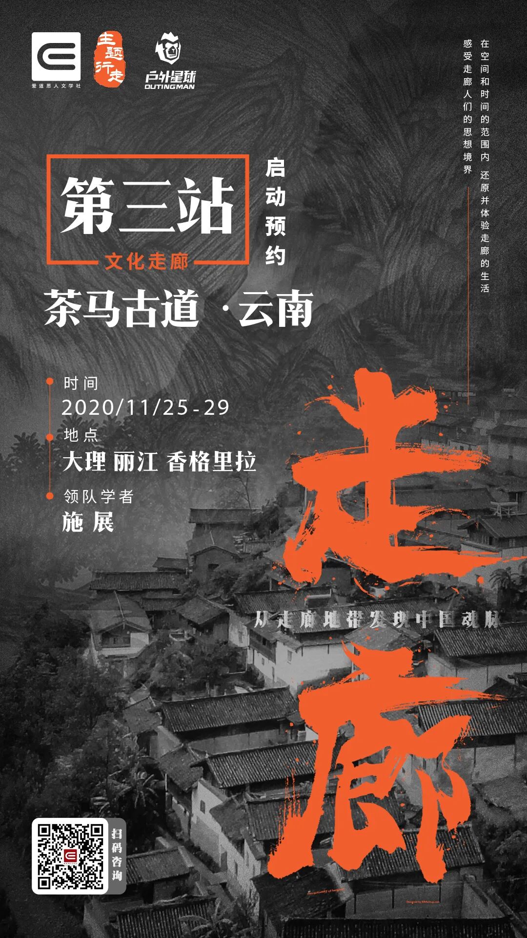 前秦的建立者苻氏以及后凉的建立者吕光,都是氐人,后秦的建立者姚氏是羌人,后来鲜卑人建立了北魏,北凉的建立者则是匈奴人。长期穿梭于河西走廊的游牧族群,如月氏人,熟悉汉人的文化价值和生活方式,成为佛教传译的中间力量。胡人与汉人的历史活动形成了各种互动关系,最终促成了汉传佛教的兴盛。在佛教的传播这个案例中,我们可以看到,文化的多元共生并不是抽象存在的,是在多种人群的交往交流交融当中展开的。河西走廊在成为文化熔炉的同时,也孕育着中华民族共同体的种子,为今天的中国奠定了基础。11月25-29日,学者施展,茶马古道,继续出发!(详情咨询学术助手—小爱,微信号 eidos6719 )“走廊”考察线路设计