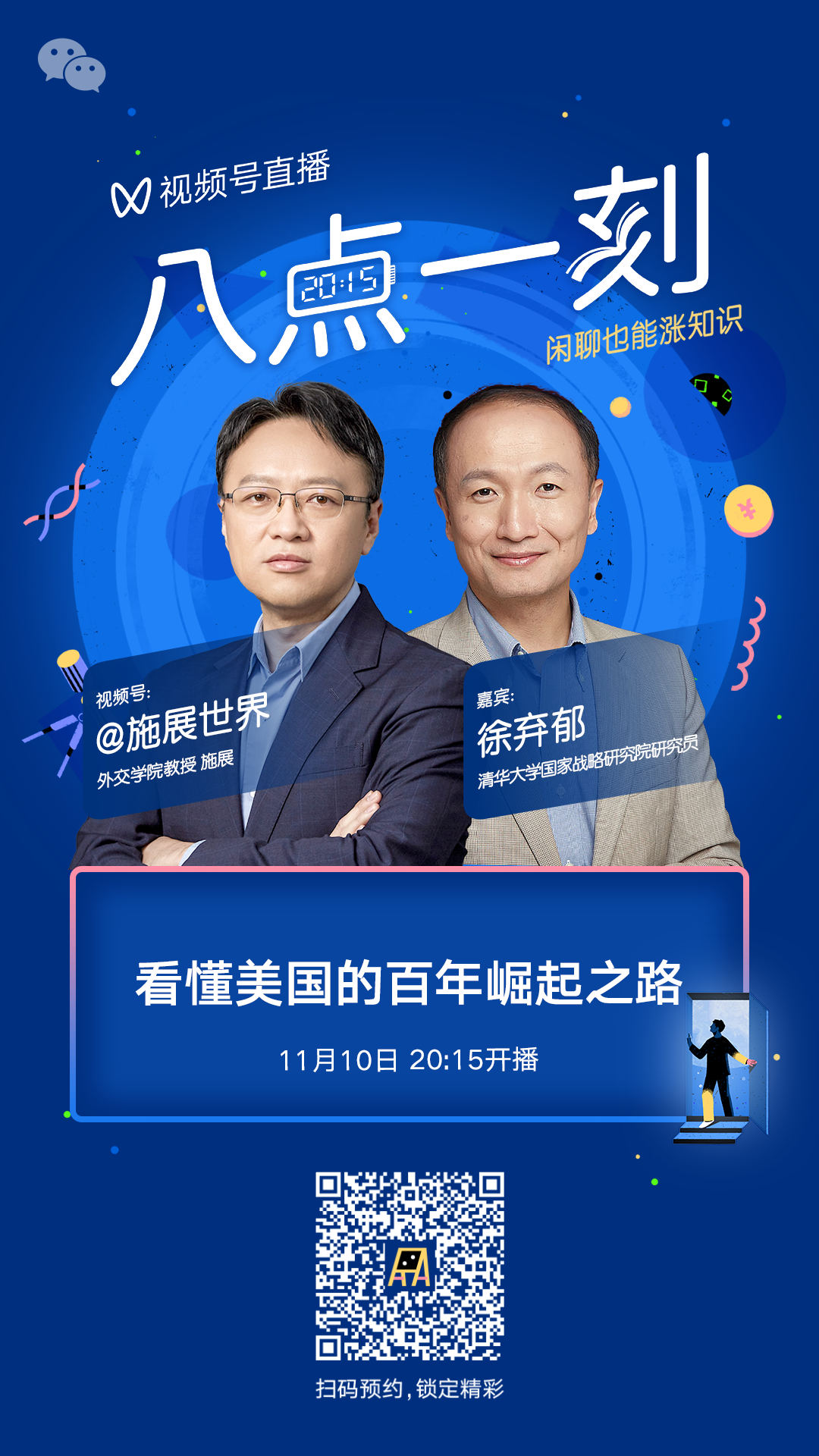 11月10日(周四)晚20:15,《帝国定型》分享会:看懂美国的百年崛起之路。欢迎扫描下方二维码预约本次直播。